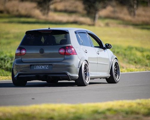 Cement grey Volkswagen Golf MK5 aimgain Seductive posture